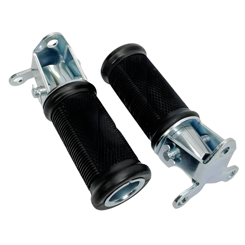 Sada zadních stupaček – pravá i levá včetně držáků, určená pro vybrané motocykly ČZ a Jawa 250/350 (Kývačka, Panelka).